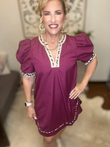 Plum Dress with Leopard trim