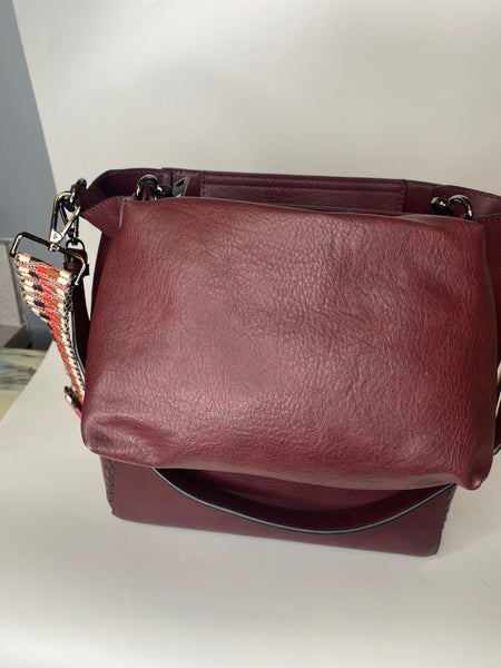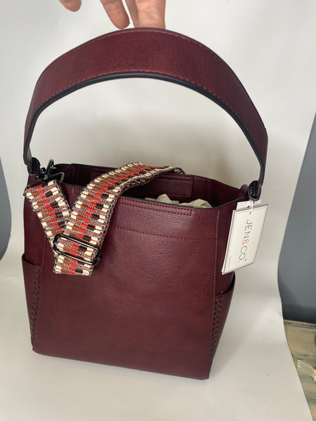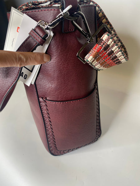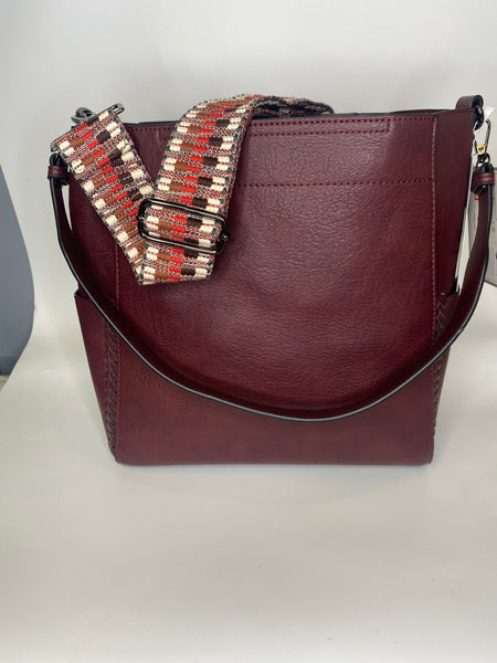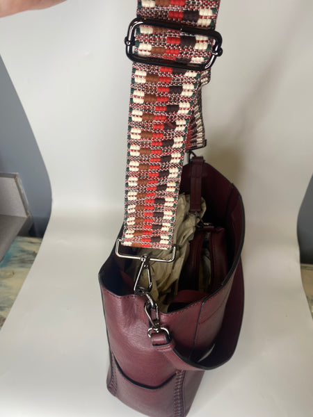 2 strap options, one adjustable guitar style strap, zipper closure on both bags, small bag good for cosmetics also 2 side pockets