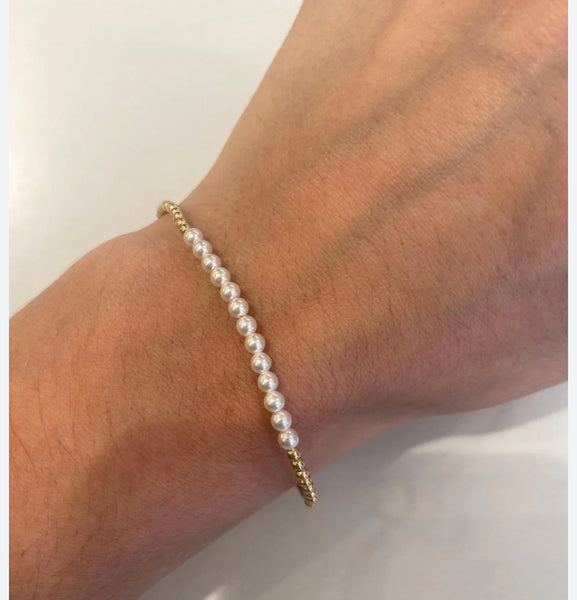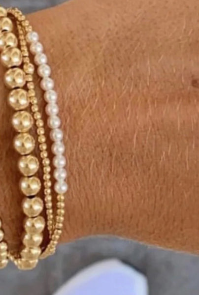 Gold Bliss 2mm Bead Bracelet-Pearl - $42.00 USD