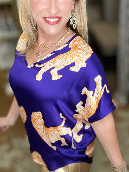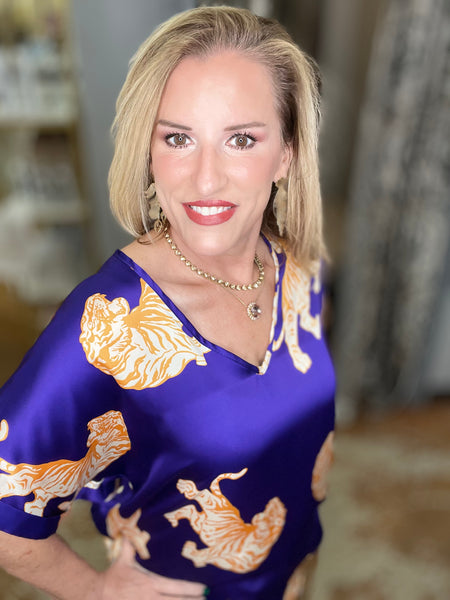 V neck cuff sleeve drop shoulder, tapers at waist, TTS or size up Adrienne brand