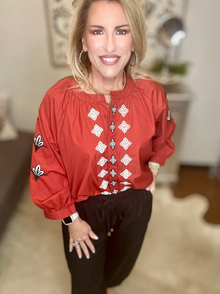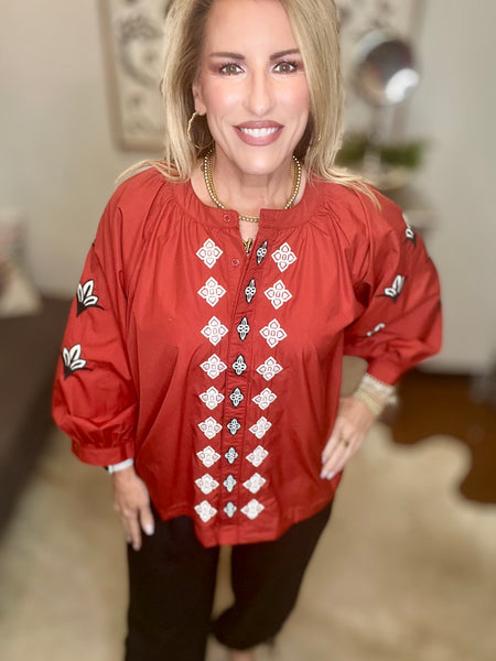 beautiful embroidered details on sleeve and front, flap covers buttons, recommend sizing down